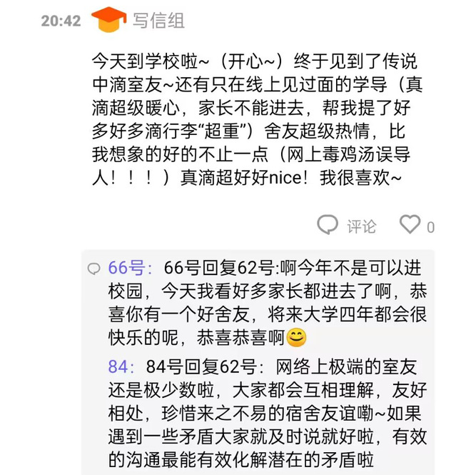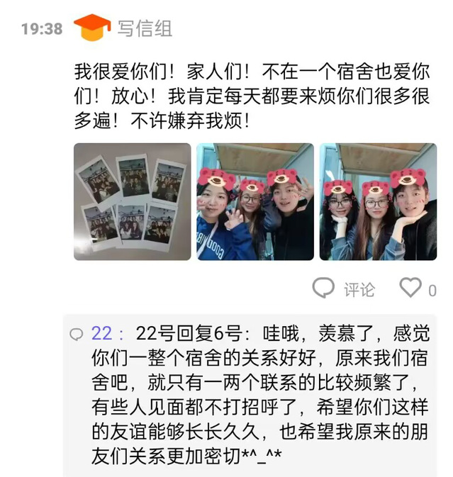 大家将信件作为感情寄托的手段,交流感情心得。同学们通过写信和回信两种方式,书写心中所想,在书信交流中感受文字的力量,收拾自己精神废墟中的少量瓦砖。