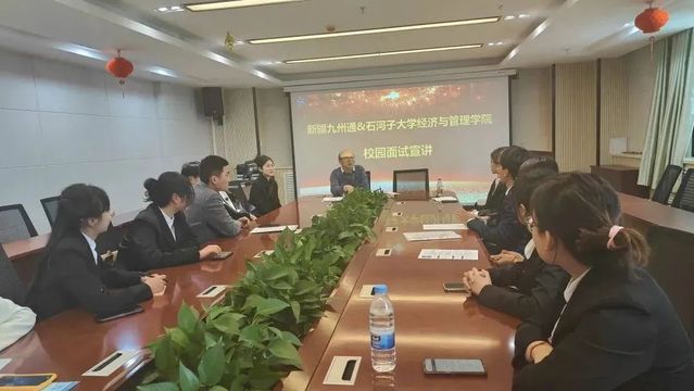在九州通医药新疆分公司会议室,企业副总经理臧成虎与同学们就未来就业方向进行了交流。随后人力资源主管带领参观的同学们进入药品存储仓库,实地参观了企业的经营管理事项、技术研发团队和岗位设置情况,并定于五月中旬前往大学展开宣讲招聘工作。