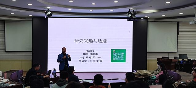 倪超军教授从何谓学术研究、学术论文的类型、如何培养研究兴趣以及如何选题四个方面展开讲座。讲座伊始,倪超军教授以“每一篇论文都是一个有温度的故事”引出本次讲座,并对学术研究的概念进行了系统解释。其次,倪超军教授以“科学、规范、创新”对学术论文的特点进行了整体概括,他认为学术论文的类型主要包括理论研究、实证研究以及综述文章,而实证研究则包括描述性研究以及分析性研究,并结合案例进行对其进行了相关阐释。接下来,倪超军教授指出可以从文献查找过程中关注的领域、教师授课过程中关注的问题、导师分配的研究任务中产生的兴趣点、专业领域中学者的研究成果以及从自身的成长经历中培养对学术研究的兴趣,从而不断激发同学们对学术研究的热情。关于如何进行选题,倪超军教授认为可以从期刊以及从现实中进行选题,从期刊中进行选题需要对其研究范畴以及理论上的可行性进行检验,而从现实中选题需要对重大社会经济问题、当前社会经济热点等外部信息以及公共政策等有着较为全面的认知。最后,倪超军教授认为对研究感兴趣才能够对写作有信心,并鼓励大家笔耕不缀定会在学术之路上收获颇丰。