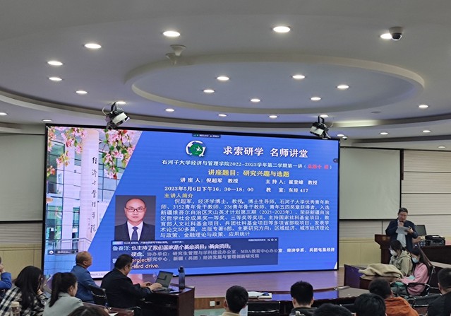 为培养研究生的科研兴趣,提高阅读思考和写作表达能力,拓宽研究生的学术视野,营造yl6809永利良好的学术氛围,公司研究生教育管理与团队建设办公室自2022年9月开始邀请校内外知名专家开设“求索研学 名师讲堂”项目。2023年5月6日“求索研学 名师讲堂”2022-2023学年第二学期第一讲(总第十讲)特邀请经济系倪超军教授就《研究兴趣与选题》做专题讲座。本次讲座由研究生教育管理与团队建设办公室主任崔登峰教授主持,公司含职工在内的共计100余名教师、硕博研究生线上线下共同参加此次讲座。