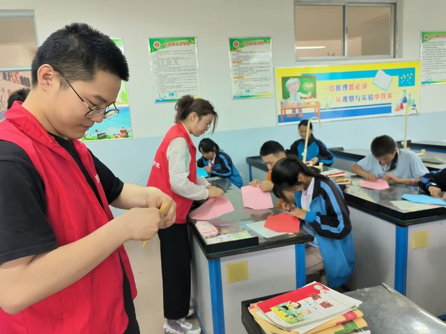 当抵达紫泥泉小学后,志愿者向公司老师介绍了此次的活动目的和流程,获得了他们的支持和配合后,大家便带着满满的爱心和热情走进各年级的课堂,向小朋友们教授剪纸艺术。剪纸是中国传统手工艺中的瑰宝,以其独特的工艺和瑰丽的图案闻名于世。员工们亲手剪出属于自己的传统剪纸作品,不仅能感受到手工艺术的乐趣,而且能体验到中华优秀传统文化的博大精深。