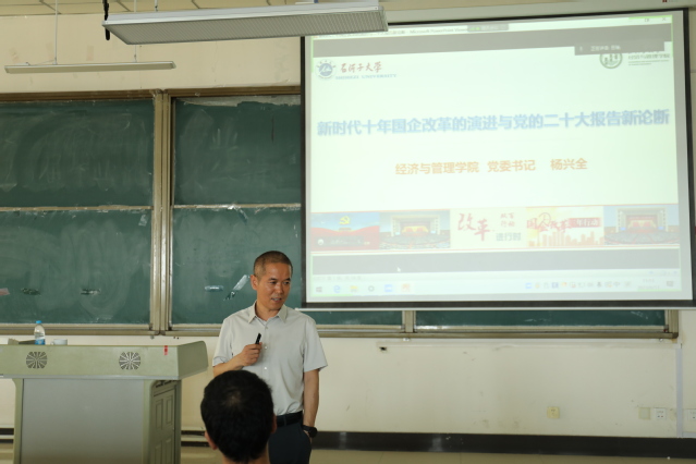 公司党委书记杨兴全讲授的《新时代十年国企改革的演进与党的二十大报告新论断》课程中,对国有经济改革的重大任务和《意见》主要亮点进行深入讲解,并结合自身专业知识,让同学们更加了解党的二十大报告对国资国企改革的新论断。