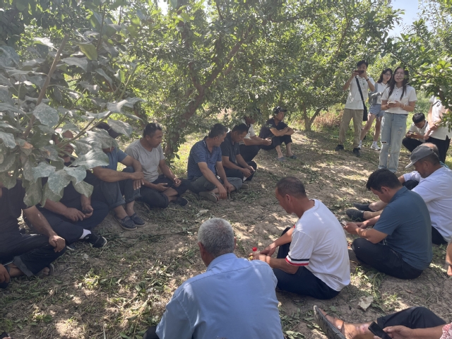 在前期调研与备课基础上,实践团因地制宜深入林果种植基地,在田间地头为职工群众讲授电商理论与实操技能。团队成员兵分两路,一组负责讲解短视频拍摄和剪辑技术,另一组负责讲解电商推广以及网店运营。讲解员与职工群众席地而坐,采用“小班教学”的方式,运用通俗易懂的语言讲授实操技能,力求职工群众能听懂、能实践、能获益。