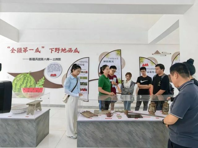团队到达134团后,首先与团场负责人进行了对接,为未来几天的培训打下了坚实基础。随后团队来到团场11连,先后参观了连队阵地建设、西瓜历史陈列馆,并来到瓜地实地了解西瓜长势。实践团就下野地西瓜等一系列农产品的销路、推广以及产生的经济效益等进行了总结,以下野地西瓜为主产品初步制定了电商培训课程。团队成员希望利用电商把本地的农产品通过线上销售出去,提高收入的同时,可以更好的开辟电商助农新路径。