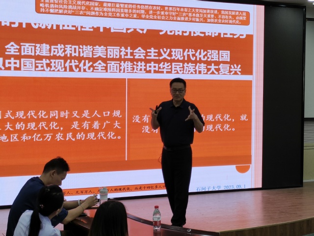 拓展yl6809永利师生专业学习与研究视野,提升yl6809永利师生在“乡村振兴战略”背景下将多学科融合的学术研究能力,9月1日,yl6809永利在东经楼438教室举办经管名家“润疆”大讲堂第18期——“现代化:高质量乡村振兴根本指向”专题讲座