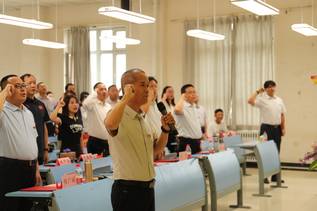 大会最后,党委书记杨兴全带领全院教职工面向党旗庄严宣誓,争做“四有好老师”,守法育人,矢志为党和人民的教育事业而努力奋斗。