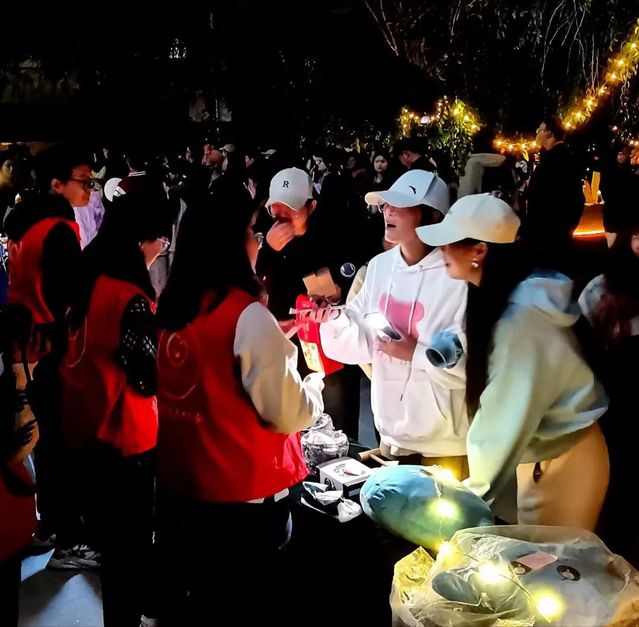 夜幕降临,摊位上的蜡烛发出柔和灯光,同皓月千里,共同抚慰经管学子的相思之心。闻讯赶来的同学们纷纷在摊前驻足,在工作人员的热情介绍之下,挑选了自己心仪的商品。他们在得到自己的“有缘之物”后,心满意足地继续自己的游园之旅。