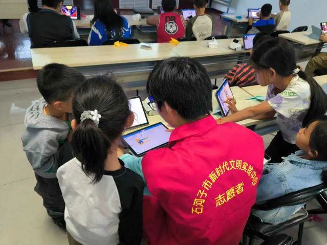 在七十八社区开展活动时,实践团为孩子们开展了“北斗领航梦想”青少年科学调查体验活动讲解和“中秋传统文化”图形化创意作品编程实战。孩子们接受新知识的速度很快,动手能力也不错,眼神中透露着纯粹的好奇与专注,大多孩子可以顺利完成实践任务。
