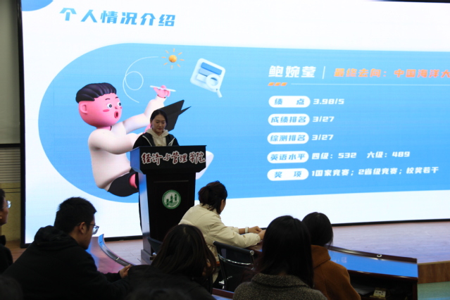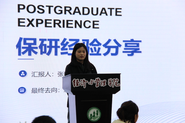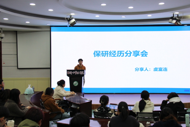 交流会中,鲍婉莹同学分享了自己作为保研边缘人的心路历程。她建议同学们保持良好心态,切勿精神内耗,敢于试错,才能不留遗憾。