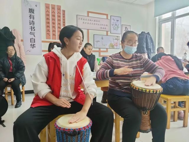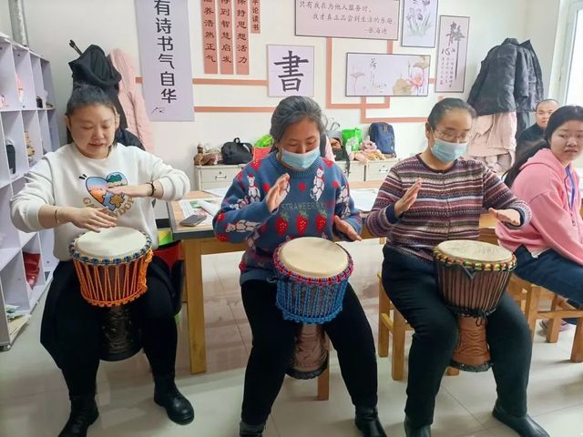 在抵达活动地点后,教学以非洲鼓节奏学习为起点拉开了序幕。阳光家园的朋友们根据音乐节奏敲击鼓点,大家精神饱满,每个击鼓的动作都像是在给乐曲注入灵魂。一首《可能》让大家感受到打击乐器传递给我们的力量感。