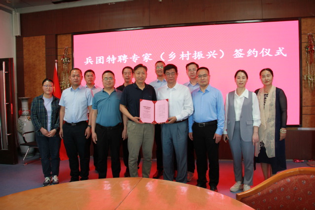 公司领导班子、兵团特聘专家(乡村振兴)团队成员、新疆(兵团)乡村振兴研究中心主任参加签约仪式。