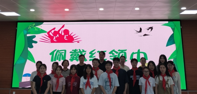随后,来自紫泥泉的五位老师为公司毕业生党员佩戴红领巾。鲜红的红领巾寄托着嘱托与期望,希望毕业生党员们坚守初心、踔厉奋发。