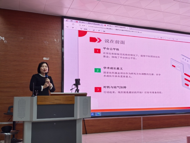 会上,魏卉教授以“选题与表达的双重修炼”为主题进行了国家自科基金申报经验分享;付瑞老师以申报流程为导入,积极分享了申报国家社科基金的成功经验。