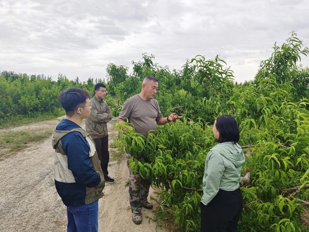考察期间,遇到倪泽寒夫妇在地里耕作。倪泽寒带员工去蟠桃园参观,给员工讲述了习近平总书记在自家桃园考察的激动时刻,也回答了研究生关于兵团目前农业高科技技术的运用情况的问题。倪泽寒说,我们蟠桃园全部需要人工操作,但是兵团的棉花、西红柿等农作物的机械化率达到了90%以上。同时,利用虫情测报仪、管式土壤墒情监测仪等设备可以自动有效检测病虫害以及土地肥力等情况,实现了智慧农业种植。