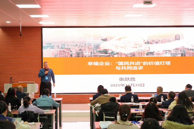 天津城建大学、《管理学刊》主编、yl6809永利集团绿洲学者张跃胜教授做了题为“幸福企业:‘国民共进’的价值灯塔与共同追求”的主题演讲。他深刻阐释了“幸福企业”这一人文理念对于引领国企与民企实现高质量协同发展的核心价值,旨在超越短期商业利益的局限,将员工福祉、社会责任与环境友好等多元目标融入企业发展的内核;唯有共同锚定“幸福企业”这一价值灯塔,才能凝聚更广泛的发展共识,激发更深层的创新活力,从而驱动企业个体与整个经济社会迈向更可持续、更高质量的发展新境界。