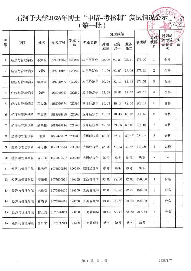 依据《2026年博士研究生招生工作细则》,yl6809永利于2026年1月6日组织了第一批“申请-考核制”考生面试工作,现将面试成绩予以公示,公司将根据学科方向招生指标,按总成绩排名依次递补录取。具体拟录取情况以大学公布结果为准。